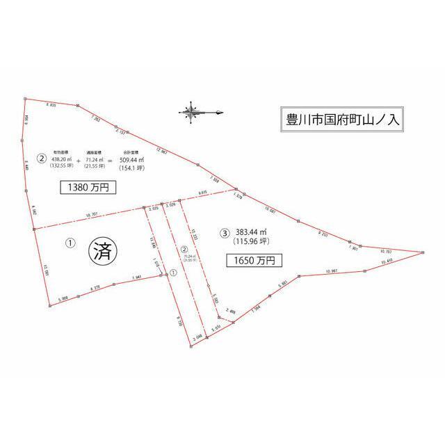 | 備考・制限等 | 法令等制限:がけ条例 *一部が音羽川の保全区域に入ります。また、音羽川の河川改修計画があり、将来的に敷地一部が該当します。詳しくは東三河建設事務所にてご相談下さい。 *下水道拡張予定区域に入ります。340円/平米が後日必要です。 *水道引き込み費用別途必要です。 | ||