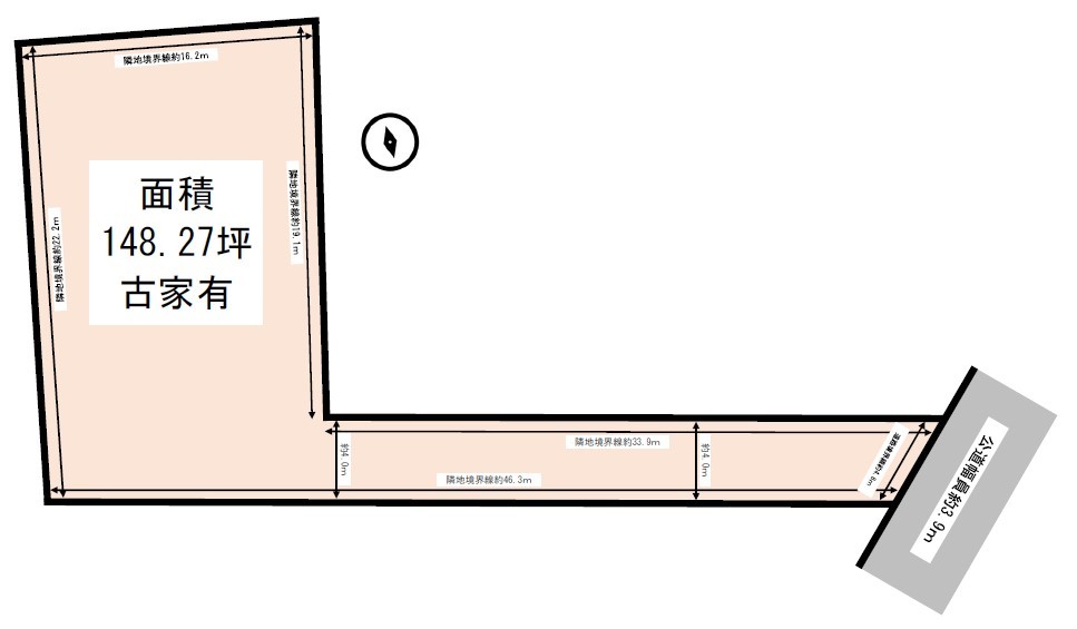 | 接道状況 | 東3.9m 公道 接面4.8m 一方道路 | ||