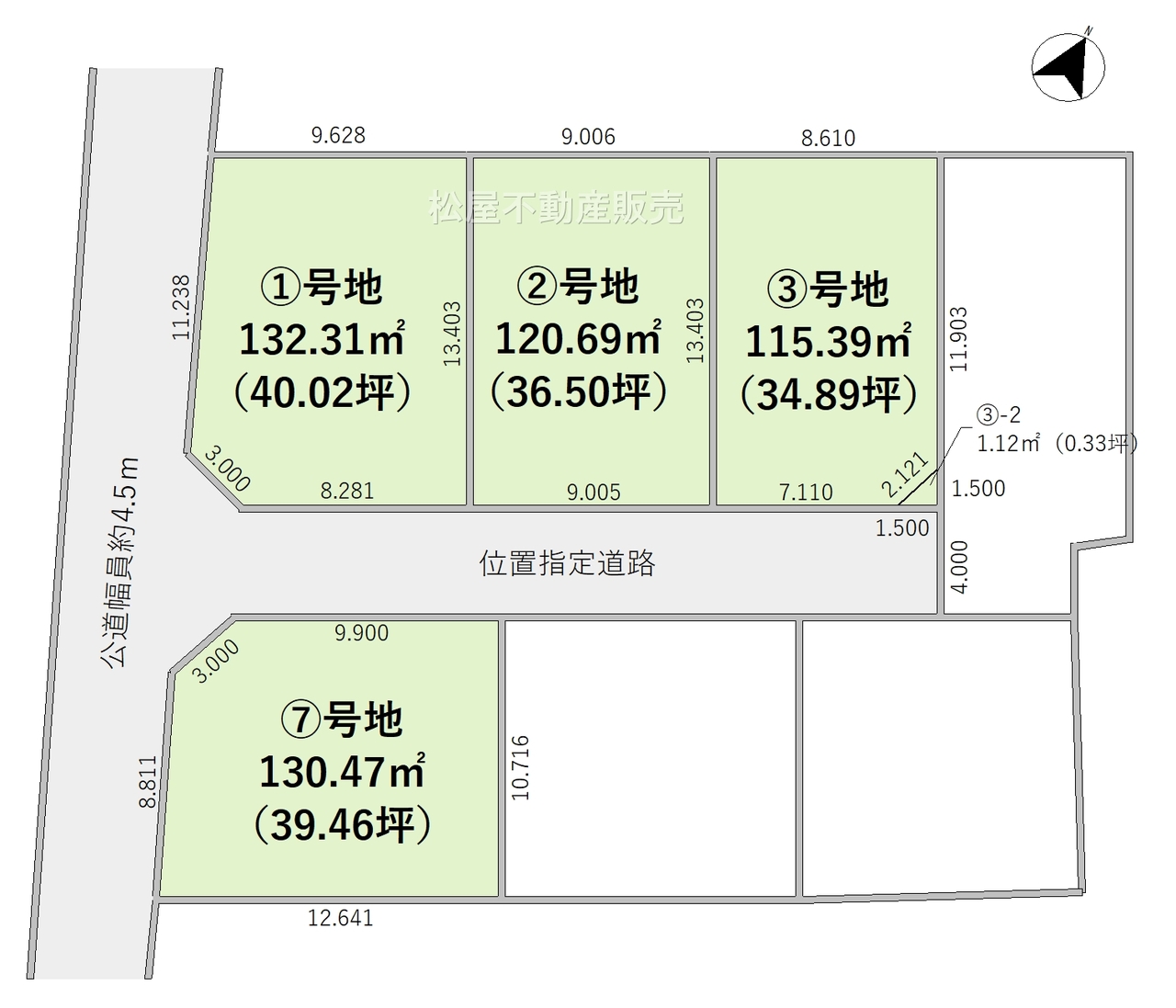 | 備考・制限等 | 1号地、2号地、3号地、7号地のみ土地販売中 4~6号棟は建売または賃貸になります。 ※位置指定道路あり 南東4メートル幅 | ||