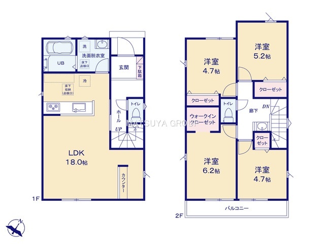 ■リビング学習にも便利なカウンター付スペース ■家事の時短にもなる水回りがまとまった間取 ■2階に手洗い器完備 ■2部屋から出入り可能バルコニー ■並列駐車2台可能