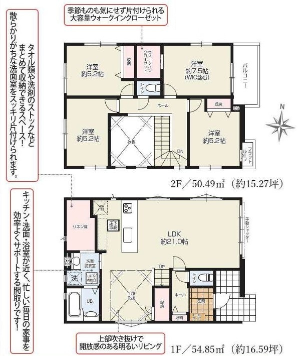 ■長期優良住宅 ■収納充実「4LDK」 ■明るく開放感のある吹抜け ■自然と集まる広々リビング21帖 ■大容量リネン庫完備 ■コミュニケーションが増えるリビング階段 ■主寝室にWIC完備 ■駐車2台