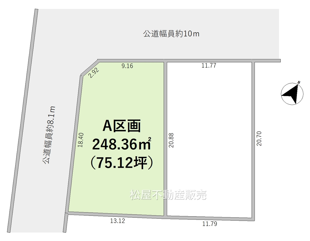 | 接道状況 | 西8.1m 公道 接面20m 北10m 公道 接面11.7m 角地 | ||