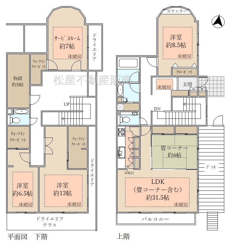 | 設備 | 都市ガス、下水道、システムキッチン、追焚機能、洗髪洗面化粧台、ウォークインクローゼット、庭、床暖房、モニタ付インターホン、温水洗浄便座、カウンターキッチン、浴室乾燥機、食器洗浄乾燥機、防犯カメラ、コンロ口数(三口),洗濯機置き場室内,オートロック,エレベータ,バルコニー,宅配ボックス,駐輪場,バイク置き場,ごみ出し24時間OK,全居室収納,メゾネット | ||
