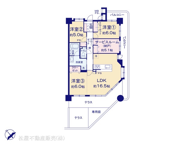 | 備考・制限等 | ペット:不可 テラス面積:25.68平米 専用庭面積:5.44平米 専用庭使用料:110円/月 | ||