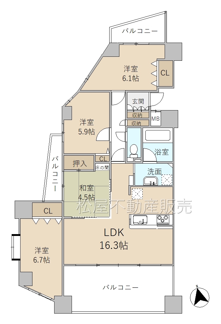 | バルコニー面積 | 16.93㎡ | 向き | 南西 |