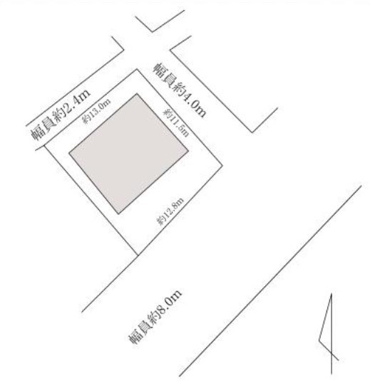 | 接道状況 | 東4m 公道 接面11.5m 南8m 公道 接面12.8m 北2.4m 私道 接面13m 三方道路 | ||