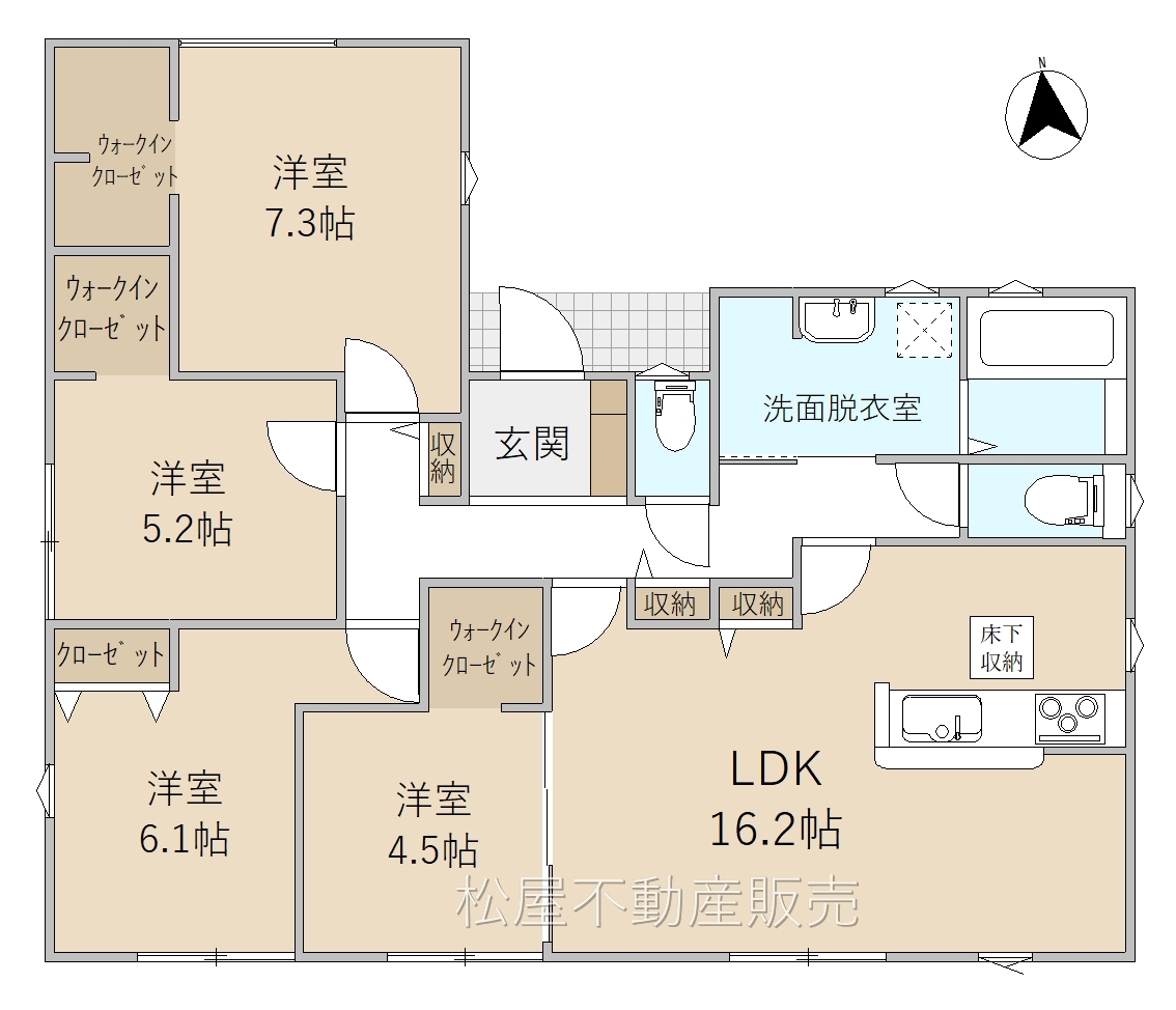 ■長期優良住宅 ■「耐震性」と「耐久性」を備えた安心住宅 ■将来も安心の平屋建て住宅 ■日当り良好な南庭 ■収納に便利なWIC3カ所完備 ■会話弾む対面キッチン ■教育施設まで徒歩5分圏内で安心