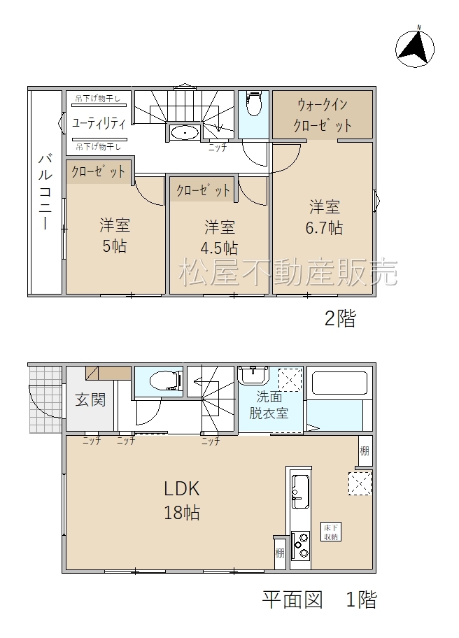 ■全居室収納付「3LDK」 ■多彩な用途に使える「ユーティリティルーム」 ■パントリー ■南庭 ■駐車場2台分 ■家事動線の良い間取 ■商業施設が近く、お買物にも便利な住環境