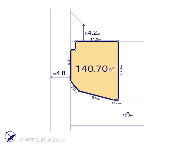 | 接道状況 | 南西6m 北西4.8m 公道 角地 | ||