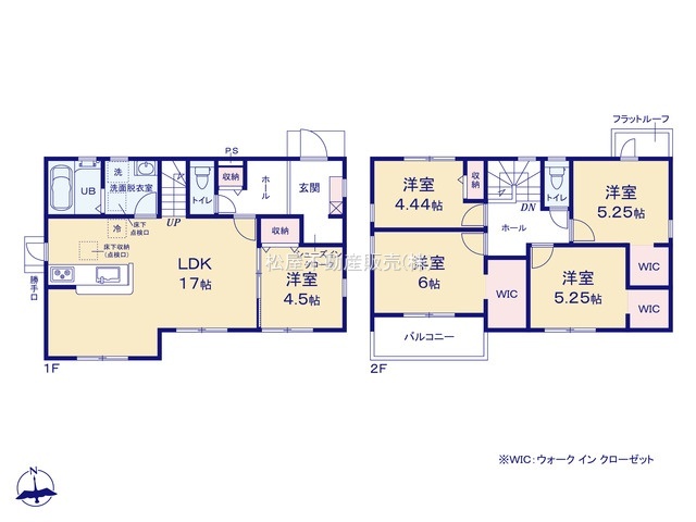 ■長期優良住宅 ■「耐震性」と「耐久性」を備えた安心住宅 ■用途多彩な「5LDK」 ■南向きリビング17帖 ■収納豊富なWIC3カ所完備 ■コミュニケーションが増えるリビング階段 ■シューズクローク