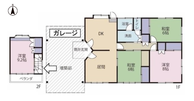 | 備考・制限等 | *現況勇姿渡し *増築未登記(鉄骨造ガレージ、2F洋室20.16平米)契約までに増築登記予定 *契約不適合責任免責 リフォーム:【2004年9月】水回り:キッチン、内装:床・フローリング等、壁・天井(クロス・塗装等)【2022年3月】外装:外壁 | ||