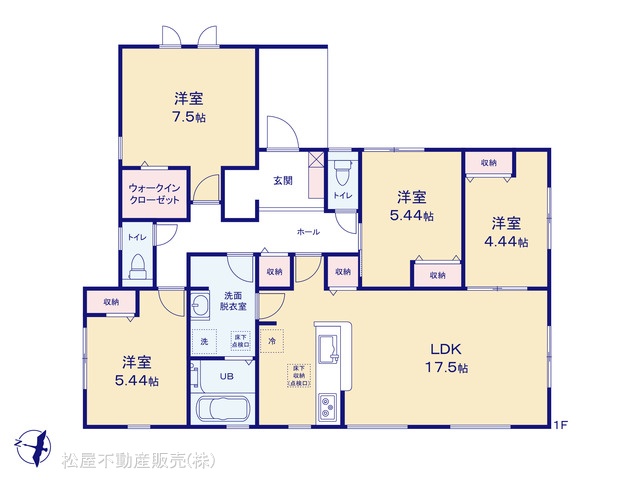 | 設備 | 下水道、システムキッチン、床下収納、ウォークインクローゼット、温水洗浄便座、カウンターキッチン、全居室収納 | ||