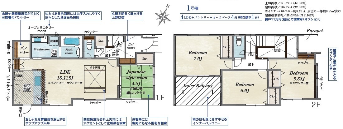 ■「限定1棟」■長期優良住宅■省エネ住宅BELS評価取得■家事動線の良い間取り「4LDK」■リビング18帖超■全居室収納付き■吹抜けのある玄関は明るく開放的■全室南向き■駐車スペース4台可能