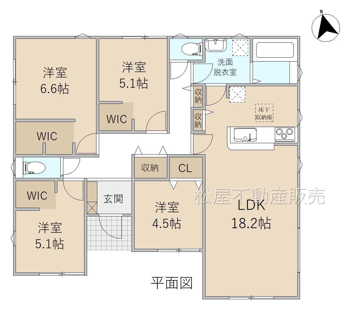 ■長期優良住宅 ■「耐震性」と「耐久性」を備えた安心住宅 ■将来も安心な平屋建て住宅 ■南向きLDK18.2帖 ■家事動線良好な4LDK ■WIC完備 ■折り上げ天井キッチン ■1号線までアクセス良好