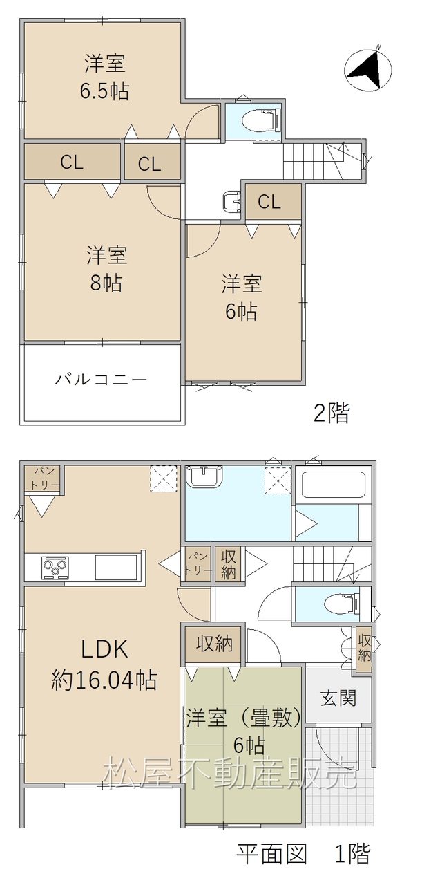 ■家事動線の良い間取り「4LDK」■リビング16帖超、隣接和室6帖■対面キッチン■あると便利なパントリー■2階全室6帖以上、クローゼット完備■二方道路で日当たり良好■小学校、ドラッグストアが徒歩圏内!