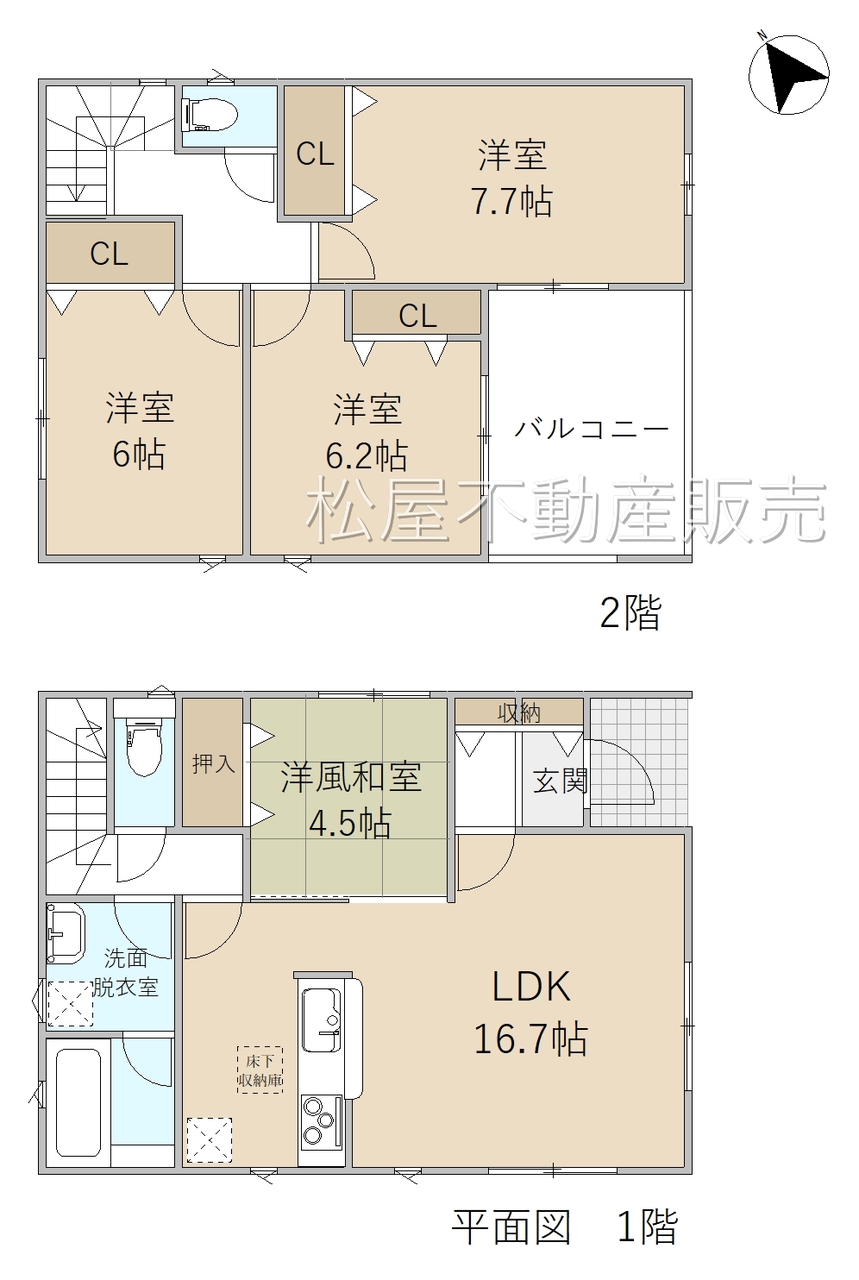 ■全居室収納付き「4LDK」■リビング16.7帖■2階全室6帖以上、クローゼット完備!■耐震 + 制震の家、QUIE(クワイエ)■保育施設や買い物施設が徒歩圏内■主要道路から中に入った閑静な住宅地