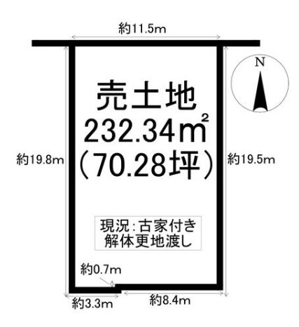 ■建物解体後、更地渡し ■「70坪」超の広々敷地 ■建築プランの自由度が高い「整形地」 ■建築条件がなく、お好きなハウスメーカーでの住まいづくりが実現