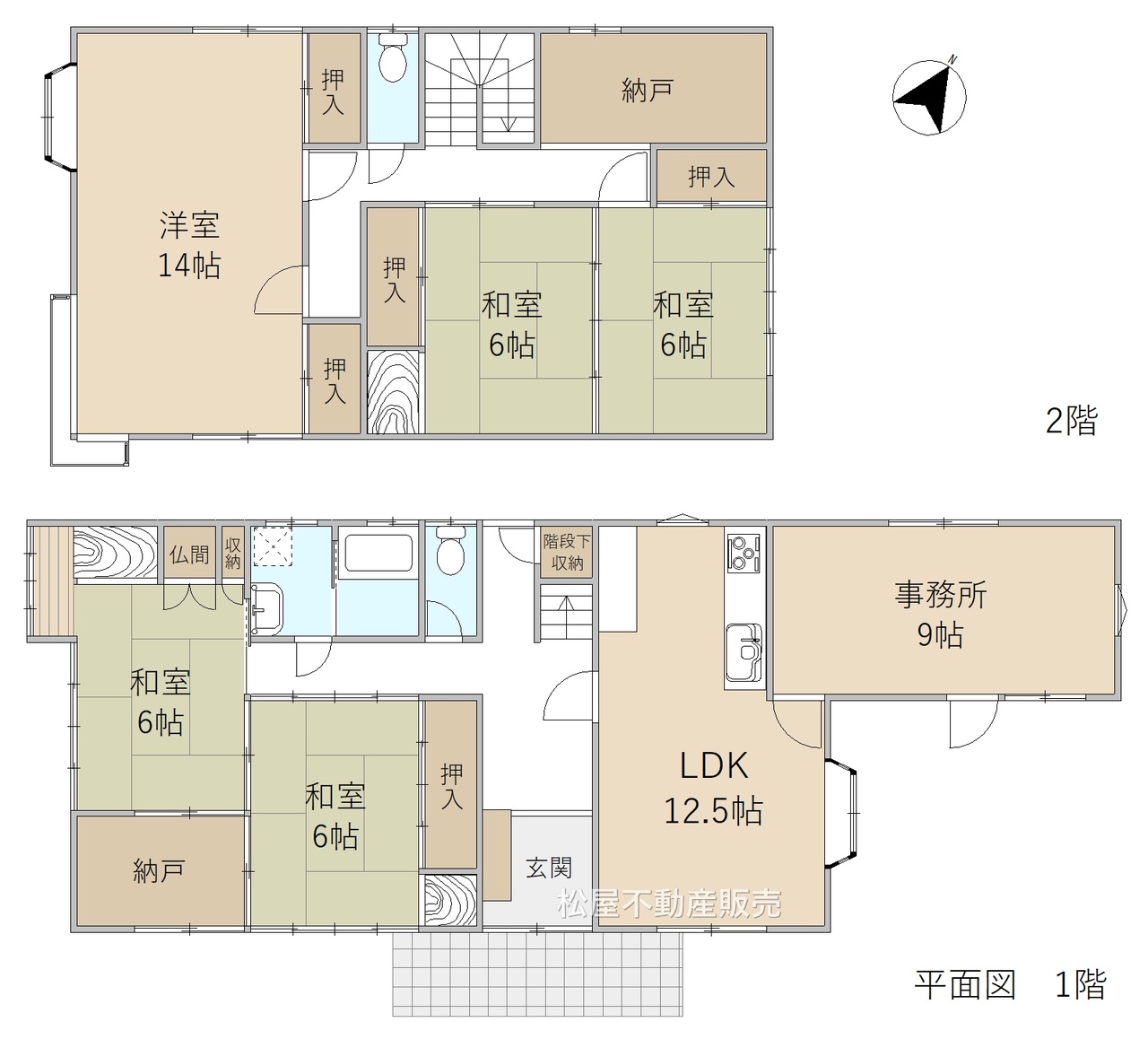 ■お部屋数充実の【5LDK】■収納や趣味のお部屋としても利用可能な納戸 ■双葉小学校まで徒歩6分 ■カーポート付 ■リビング奥の事務所は家庭学習や在宅ワークにも便利 ■全居室収納完備 ■床の間付き和室