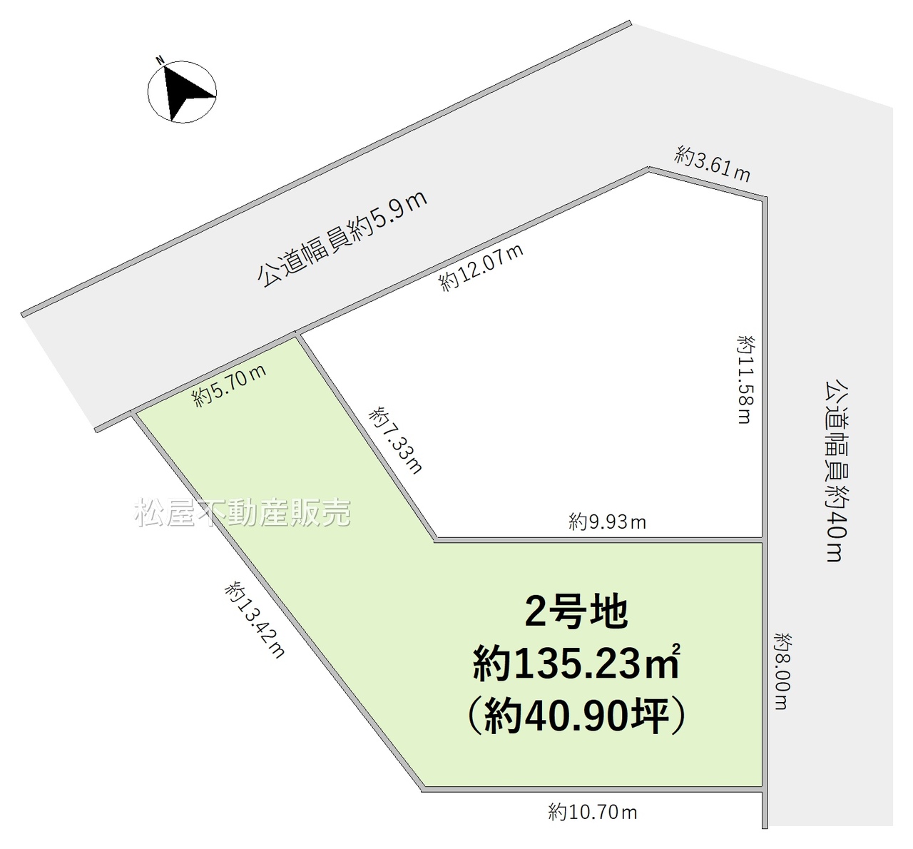 | 接道状況 | 北西5.9m 公道 接面5.7m 南東40m 公道 接面8m 二方道路(除角地) | ||