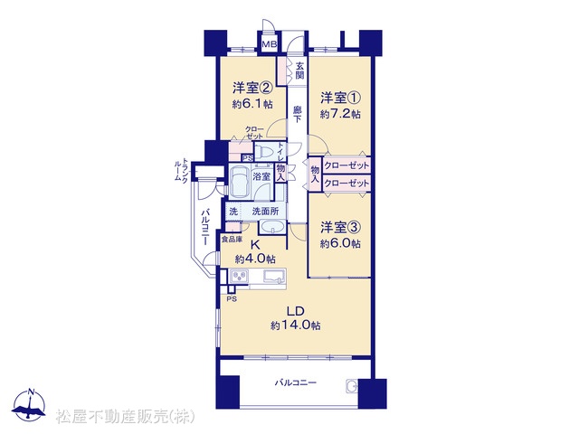 | 設備 | システムキッチン、温水洗浄便座、カウンターキッチン、浴室乾燥機、トランクルーム,エレベータ,バルコニー,全居室収納 | ||