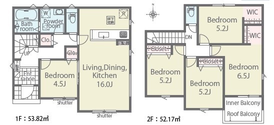 ■2階に4部屋確保の「5LDK」■雨の日も安心なインナーバルコニー■リビング16帖■長期優良住宅■駐車スペースは、並列3台可能■小学校やバス停、買い物施設が徒歩圏内で生活便利■前面南道路で日当たり良好