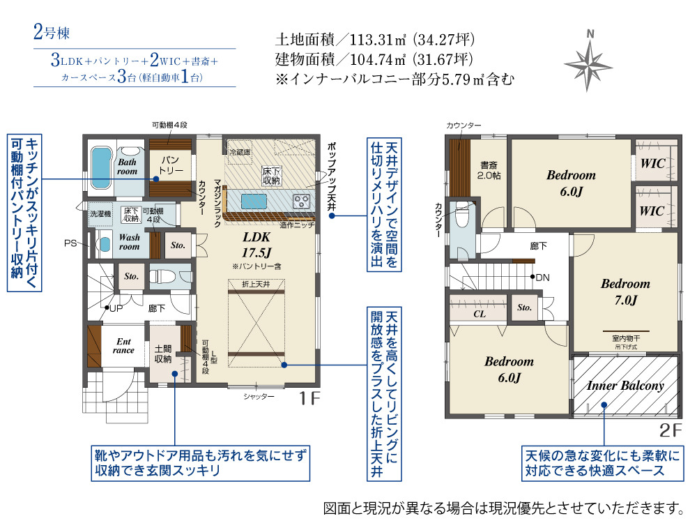■WIC完備「3SLDK」 ■2階全居室6帖以上! ■納戸としても使用可能な書斎 ■雨でも安心インナーバルコニー ■玄関もスッキリ土間収納付き ■広々なパントリー完備 ■整形地 ■長期優良住宅
