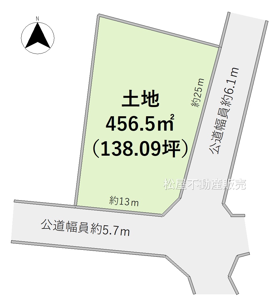 | 接道状況 | 東6.1m 公道 接面25m 南5.7m 公道 接面13m 角地 | ||
