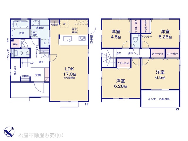 | 設備 | 都市ガス、下水道、システムキッチン、床下収納、温水洗浄便座、カウンターキッチン、浴室乾燥機、食器洗浄乾燥機、バルコニー,全居室収納 | ||