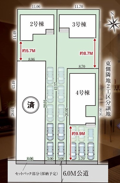 | 接道状況 | 南6m 公道 接面3m 一方道路 | ||