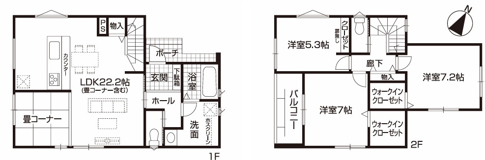 ■タタミコーナー付「3LDK」 ■全室2面採光で日当り良好 ■広々リビング22.2帖 ■便利なリビング収納 ■会話増えるリビング階段 ■お子様の様子も見渡せる対面キッチン ■たっぷり収納WIC2か所