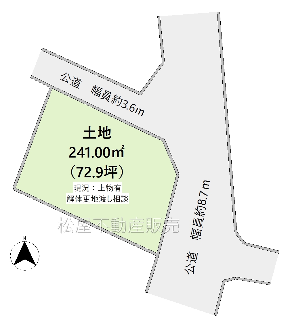 | 接道状況 | 東8.7m 公道 北3.6m 公道 角地 | ||