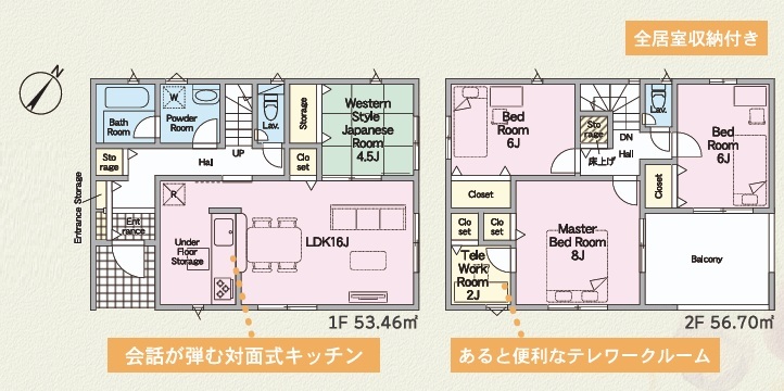 ■耐震 + 制震の家、QUIE(クワイエ) ■和室付き「4SLDK」 ■南向きリビング16帖 ■お子様も見守れる対面キッチン ■テレワークルームとしても便利な納戸 ■2階全居室6帖以上と広々