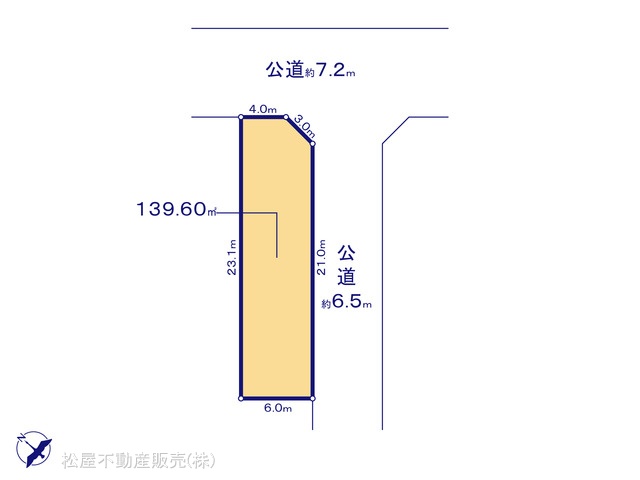| 接道状況 | 北東7.2m 公道 南東6m 角地 | ||