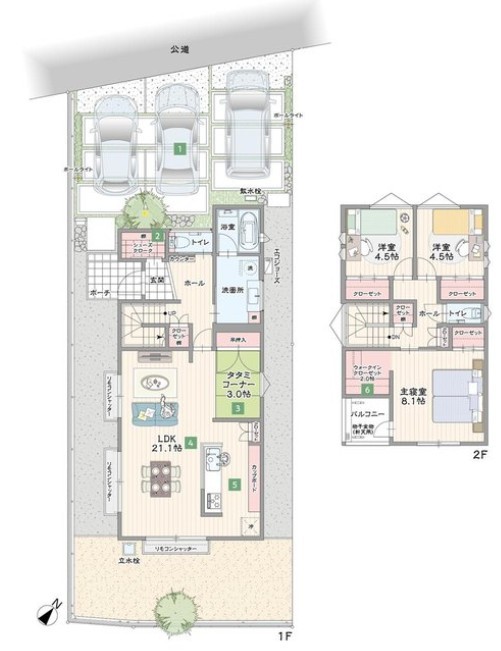 | 設備 | 都市ガス、下水道、システムキッチン、洗髪洗面化粧台、床下収納、ウォークインクローゼット、モニタ付インターホン、温水洗浄便座、カウンターキッチン、浴室乾燥機、食器洗浄乾燥機、コンロ(ガス),コンロ口数(三口),給湯,全居室収納,シューズインクローゼット,太陽光発電システム | ||