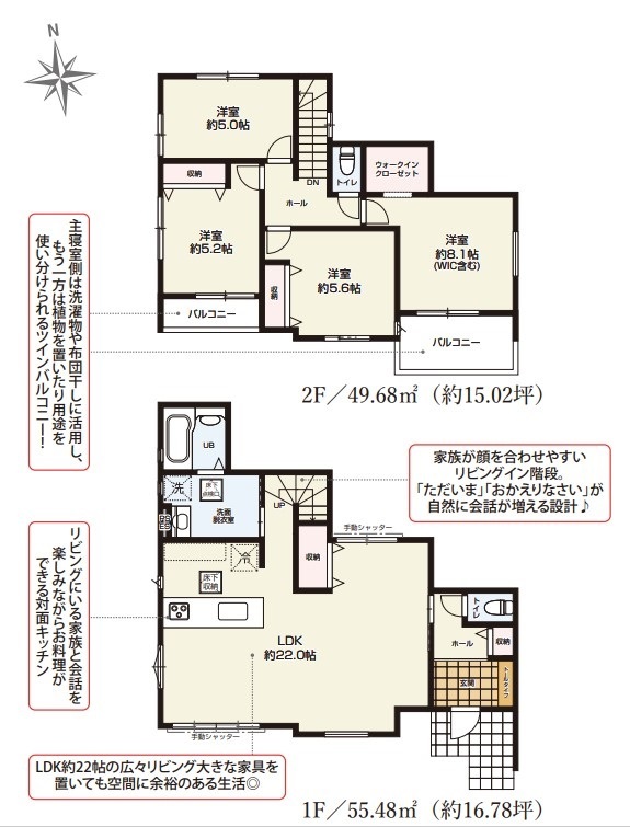 ■【4LDK】■広々LDK22帖 ■南道路に面して日当たり通風良好 ■リビング階段 ■学習用具も片付くリビング収納完備 ■中ノ町小学校まで徒歩10分 ■バルコニー2ヶ所 ■駐車スペース並列3台可能