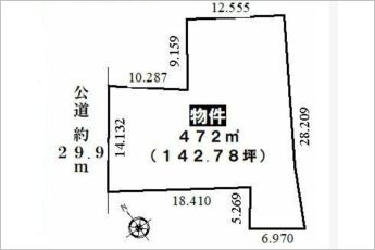 | 接道状況 | 北西29m 公道 接面14.1m 一方道路 | ||