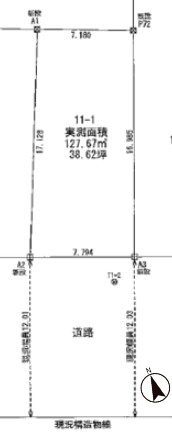 | 接道状況 | 南12m 公道 接面7.7m 一方道路 | ||