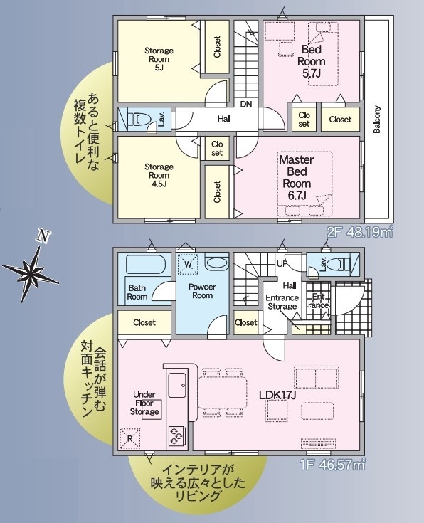■耐震 + 制震の家、QUIE(クワイエ)■【2SLDK】■居室や書斎としても利用可能なストレージルーム ■水回り家事ラク動線の間取 ■パントリー ■全居室2面採光で日当たり、通風良好