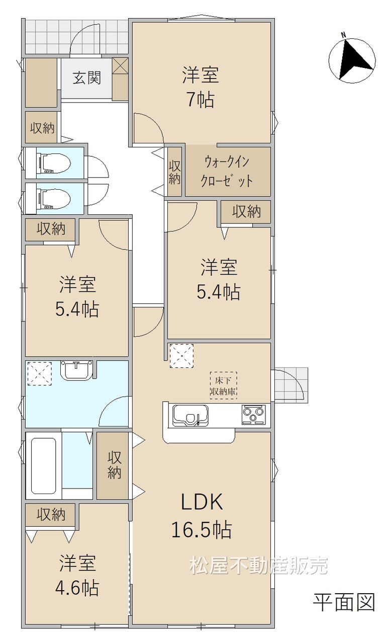 ■長期優良住宅■「耐震性」と「耐久性」を備えた安心住宅■4LDK「平屋建て」■リビング16.5帖■ウォークインクローゼット完備■開放的な折下天井■全居室収納付■駐車スペース3台可能■小学校まで徒歩8分