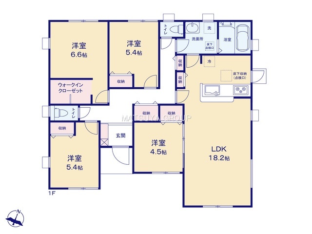 ■収納豊富な平屋建て住宅「4LDK」■全居室収納付■リビング18.2帖■広々間口で駐車も楽ちん■前面南道路で日当たり良好!■長期優良住宅■「耐震性」と「耐久性」を備えた安心住宅■買い物施設が徒歩圏内!