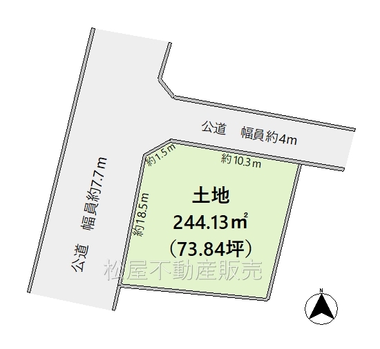 | 接道状況 | 西7.7m 公道 接面18.5m 北4m 公道 接面10.3m 角地 | ||