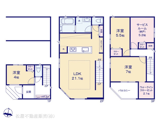 | 設備 | 都市ガス、下水道、システムキッチン、洗髪洗面化粧台、ウォークインクローゼット、床暖房、モニタ付インターホン、温水洗浄便座、カウンターキッチン、浴室乾燥機、食器洗浄乾燥機、バルコニー,全居室収納 | ||