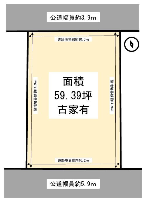 | 接道状況 | 南5.9m 公道 接面10.2m 北3.9m 公道 接面10m 二方道路(除角地) | ||