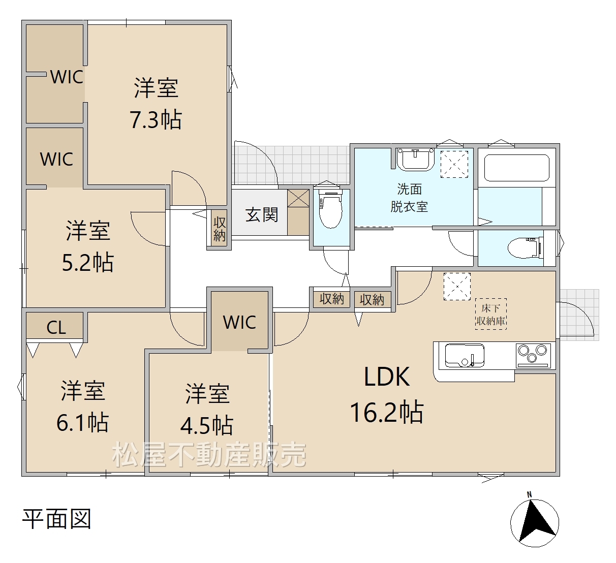 ■長期優良住宅 ■「耐震性」と「耐久性」を備えた安心住宅 ■生活動線が良好な「4LDK」 ■平屋建て住宅 ■WIC3カ所完備 ■便利なリビング収納 ■会話弾む対面キッチン ■150号線までアクセス良好