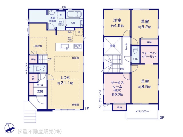 | 設備 | 都市ガス、下水道、システムキッチン、床下収納、ウォークインクローゼット、床暖房、モニタ付インターホン、温水洗浄便座、カウンターキッチン、食器洗浄乾燥機、バルコニー | ||
